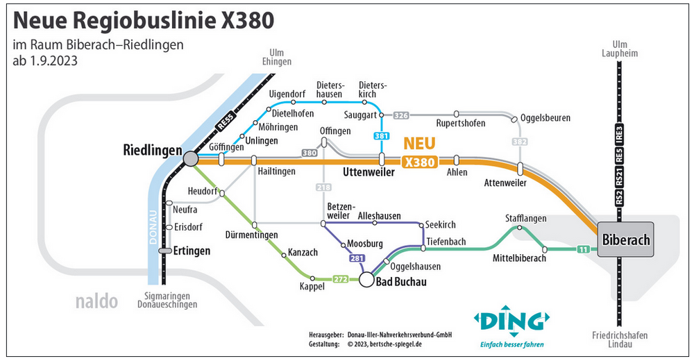 Regiobus-Linie X380 | Riedlingen – Göffingen – Haitingen – Uttenweiler – Ahlen – Schammach – Gutershofen - Attenweiler – Biberach